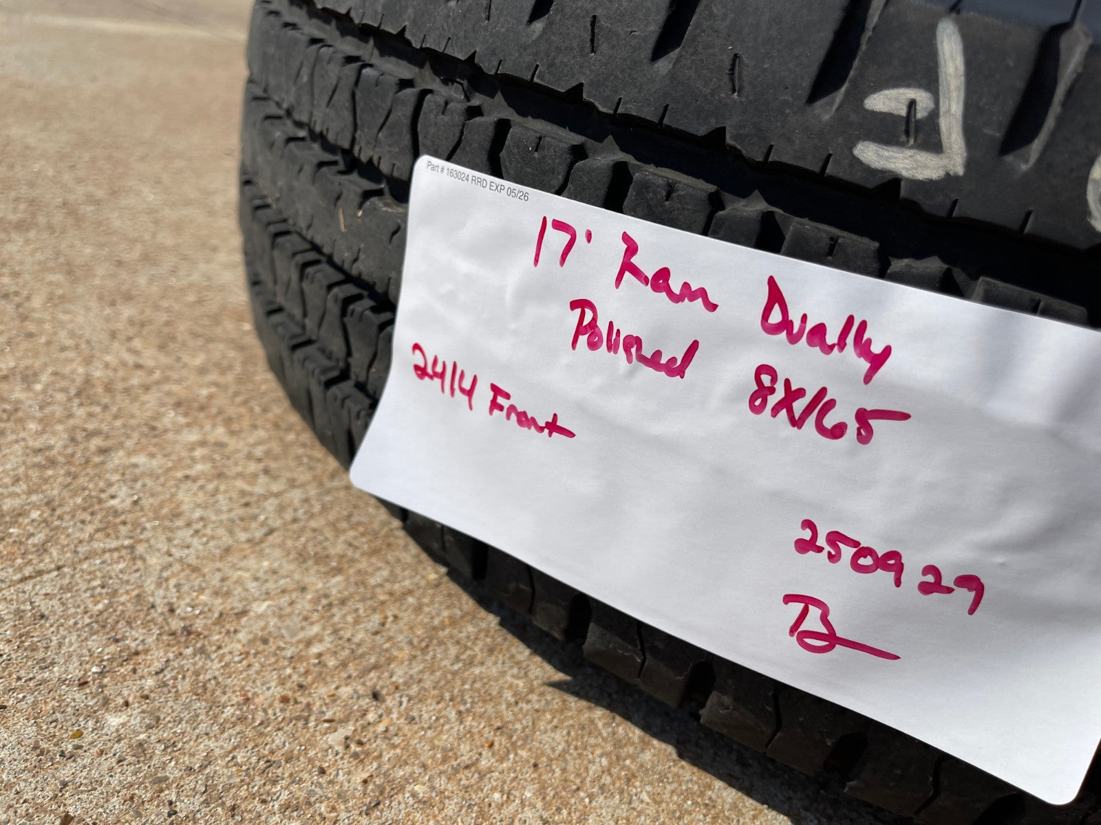 (1) 17" RAM 3500 OEM Dually front wheel and tire
