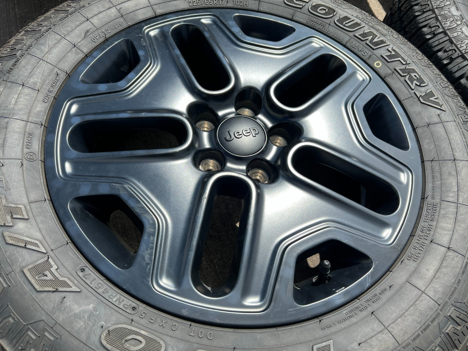 (4) 17" Jeep Cherokee / Renegade / Compass OEM black wheels and tires
