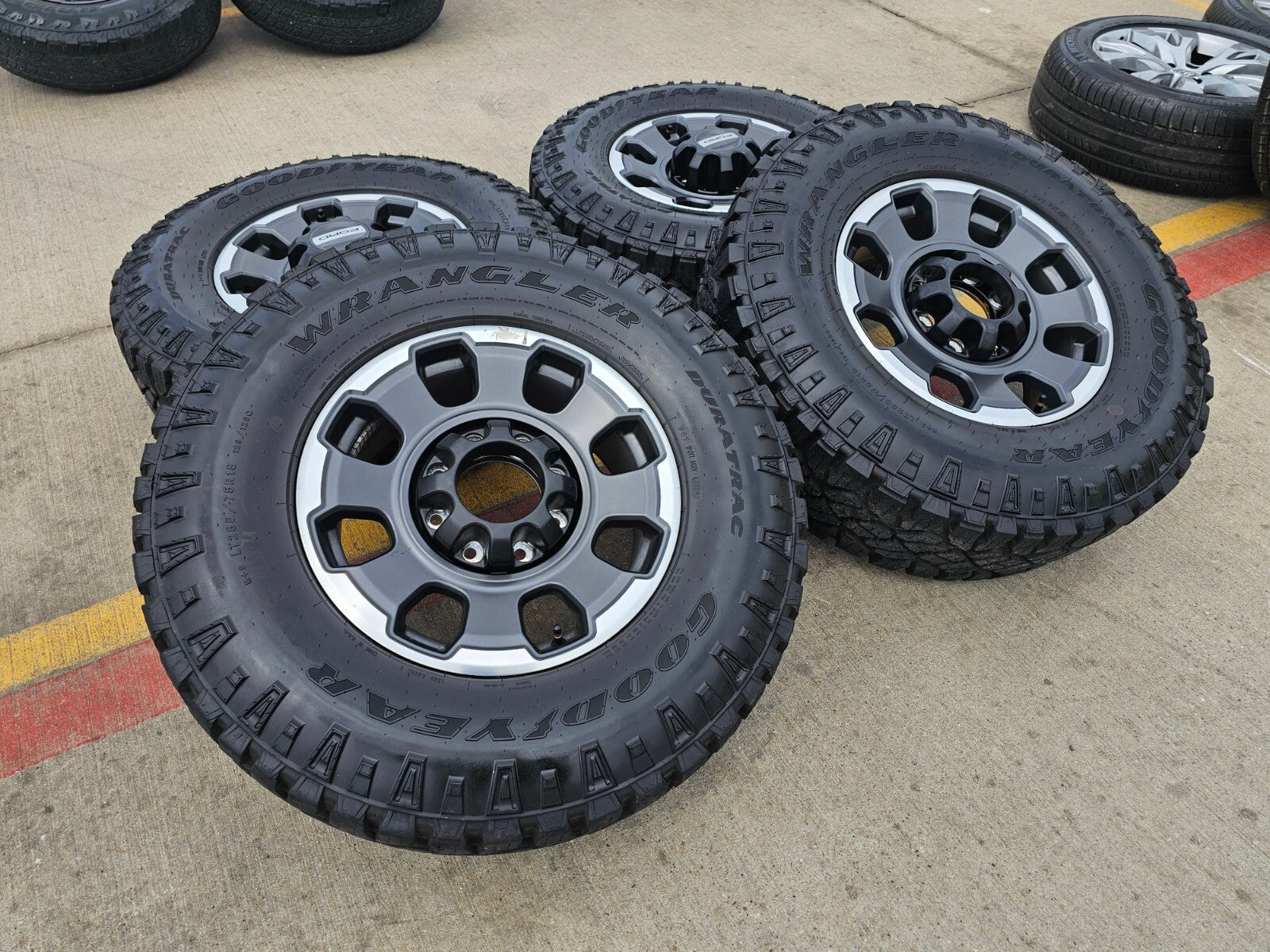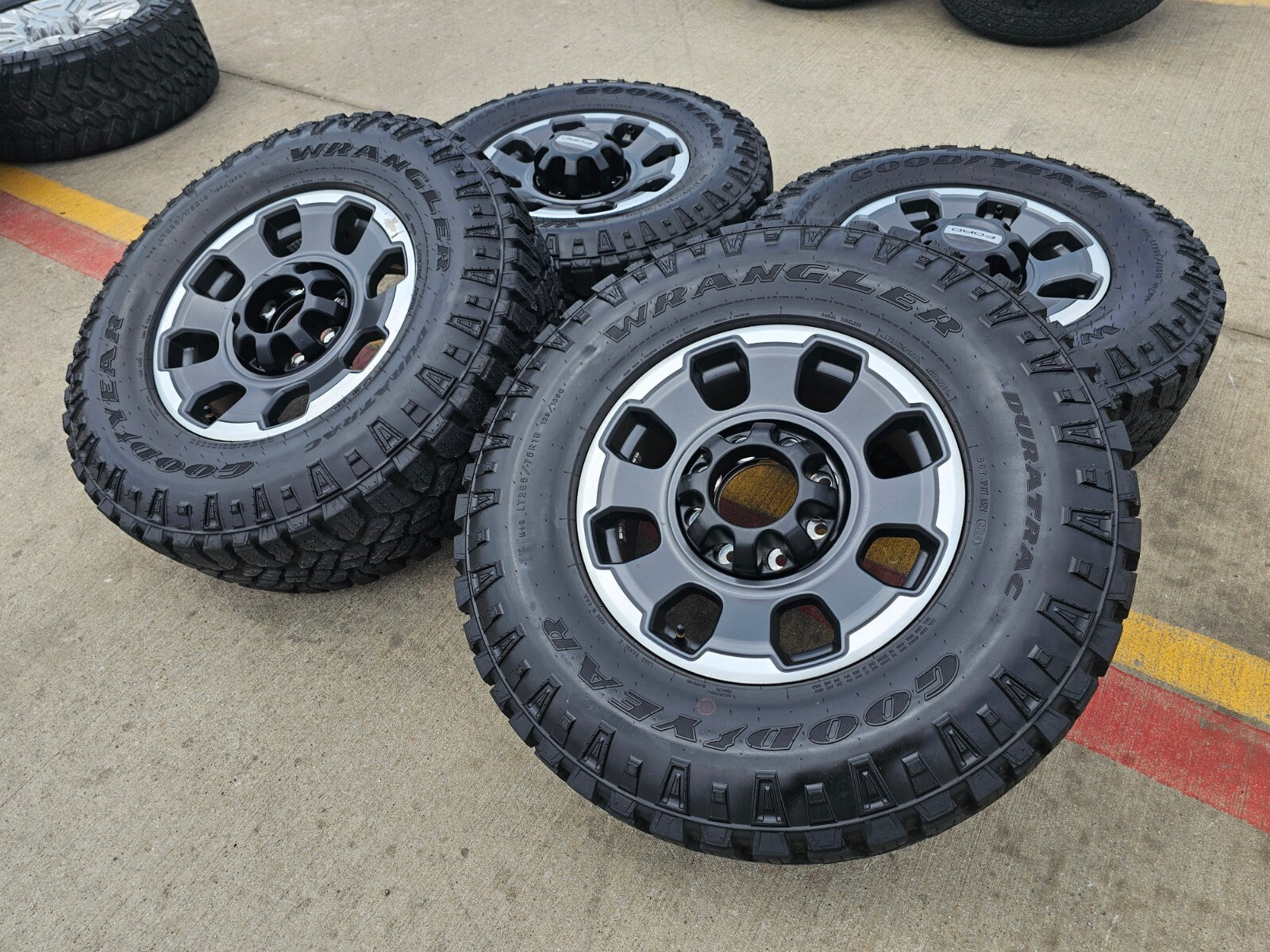 -Tires are 285/75/18 (35x11.5x18) Goodyear Wrangler Duratrac A/T with great tread!
