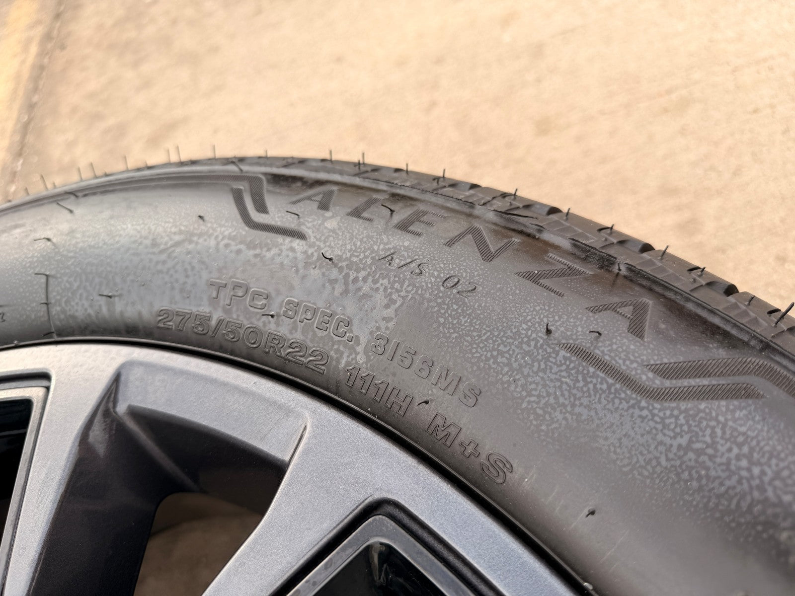 -Tires are 275/50/22 Bridgestone Alenza A/S02, NEW take offs!