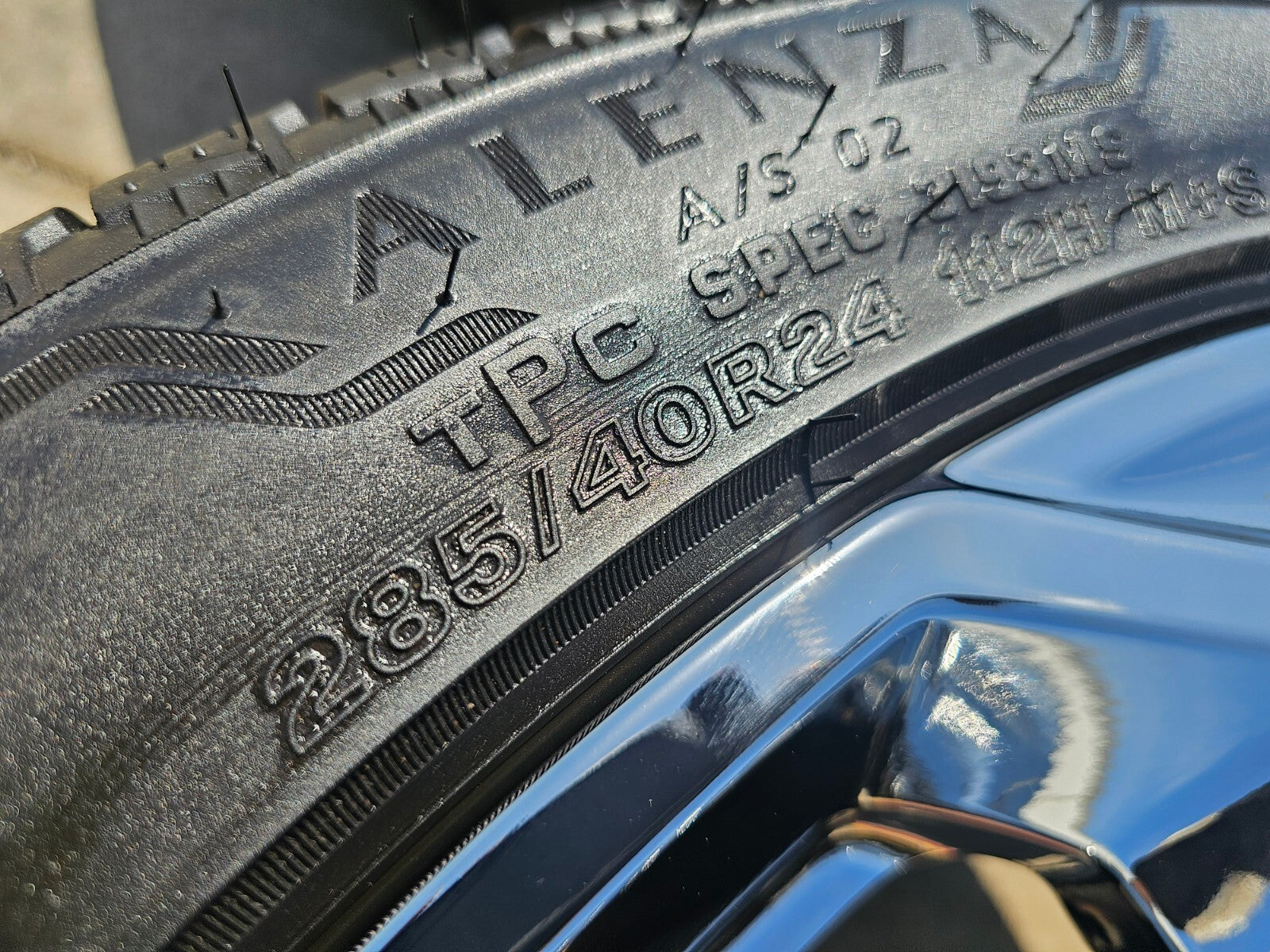 -Tires are 285/40/24 Bridgestone Alenza A/S02 with great tread!